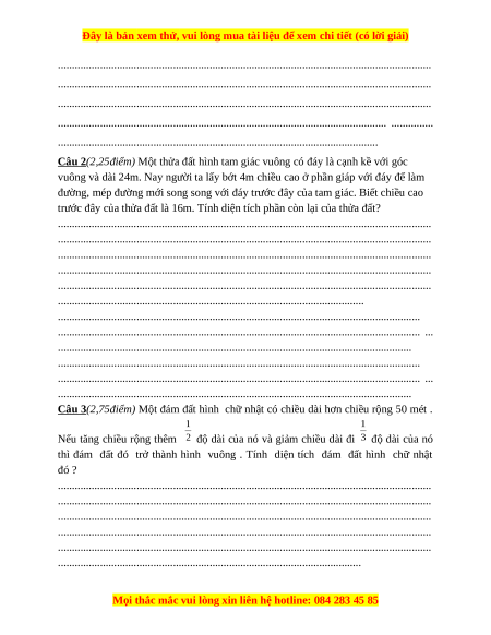 Đây là bản xem thử, vui lòng mua tài liệu để xem chi tiết (có lời giải)