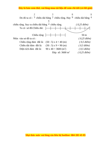 Chiều rộng đám đất là: (50 : 5) x 4 = 40 (m) ( 0,5 điểm)