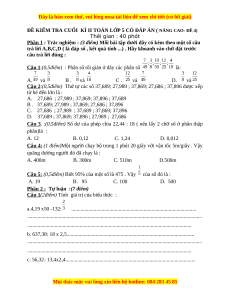 ĐỀ KIỂM TRA CUỐI KÌ II TOÁN LỚP 5 CÓ ĐÁP ÁN ( NÂNG CAO- ĐỀ 4) Thêi gian : 40 phót