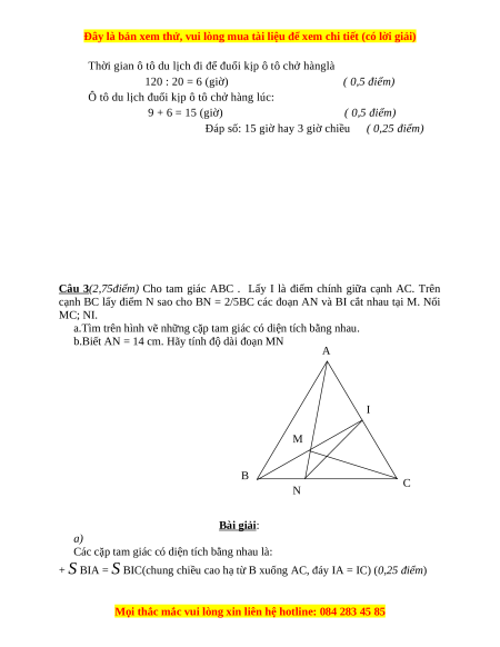Vì S BIC = S BIA nên S BIN = 2/5 S BIA. (0,25 điểm)