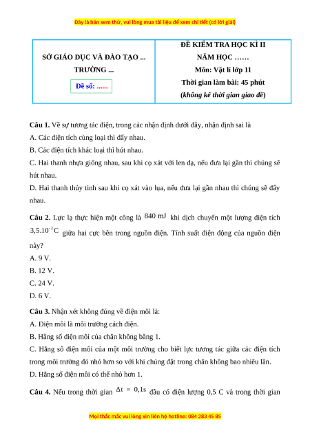 Môn: Vật lí lớp 11