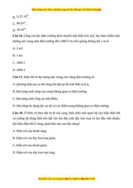 Câu 15. Số electron đi qua tiết diện thẳng của một dây dẫn kim loại trong khi có điện lượng