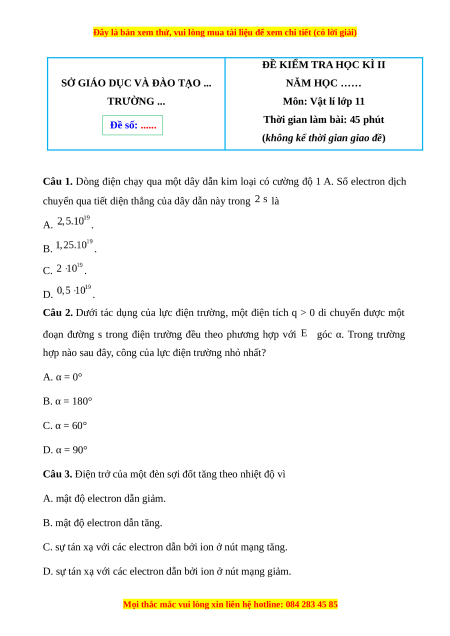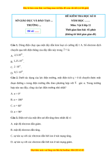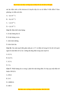Câu 1. Dòng điện chạy qua một dây dẫn kim loại có cường độ 1 A. Số electron dịch