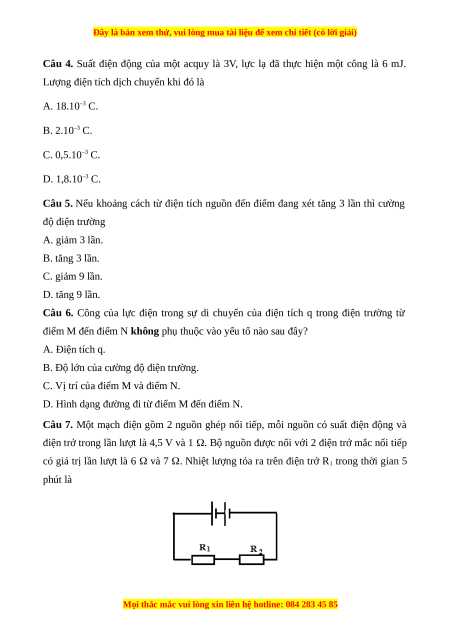 Câu 4. Suất điện động của một acquy là 3V, lực lạ đã thực hiện một công là 6 mJ.