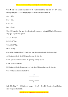 Câu 4. Đặt vào hai đầu một điện trở R = 20 Ω một hiệu điện thế U = 2 V trong