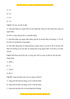 Câu 10. Công suất định mức của các dụng cụ điện là