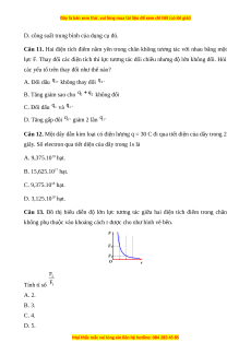 Câu 11. Hai điện tích điểm nằm yên trong chân không tương tác với nhau bằng một
