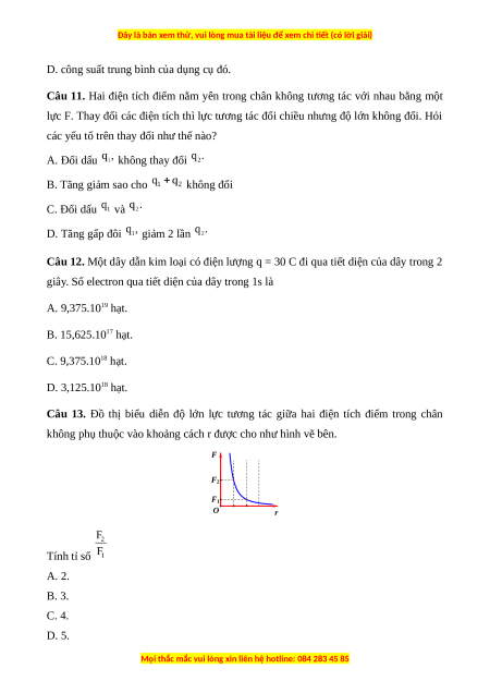 không phụ thuộc vào khoảng cách r được cho như hình vẽ bên. F F2 F1 O r Tính tỉ số A. 2. B. 3. C. 4. D. 5.