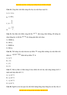 Câu 12. Một dây dẫn kim loại có điện lượng q = 30 C đi qua tiết diện của dây trong 2