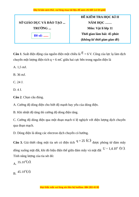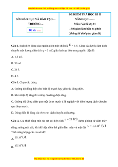 Câu 1. Suất điện động của nguồn điện một chiều là = 6 V. Công của lực lạ làm dịch