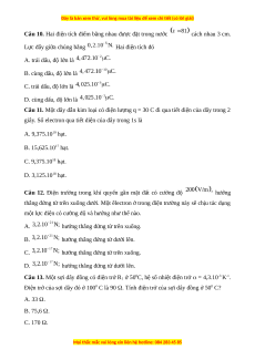 Câu 12. Điện trường trong khí quyển gần mặt đất có cường độ hướng