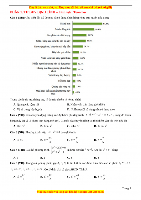 Đây là bản xem thử, vui lòng mua tài liệu để xem chi tiết (có lời giải)