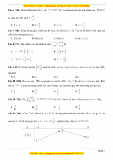 Câu 6 (TH): Trong không gian Oxyz, biết là vecto pháp tuyến của mặt phẳng qua