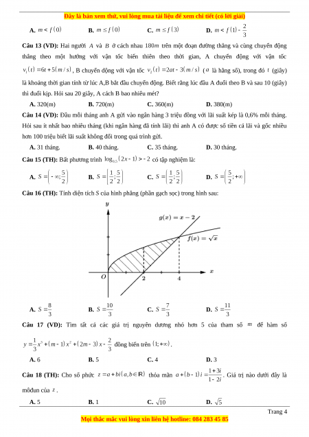 là các số hữu tỉ. Giá trị của bằng: A. B. C. D. Câu 12 (VDC): Cho mà hàm số