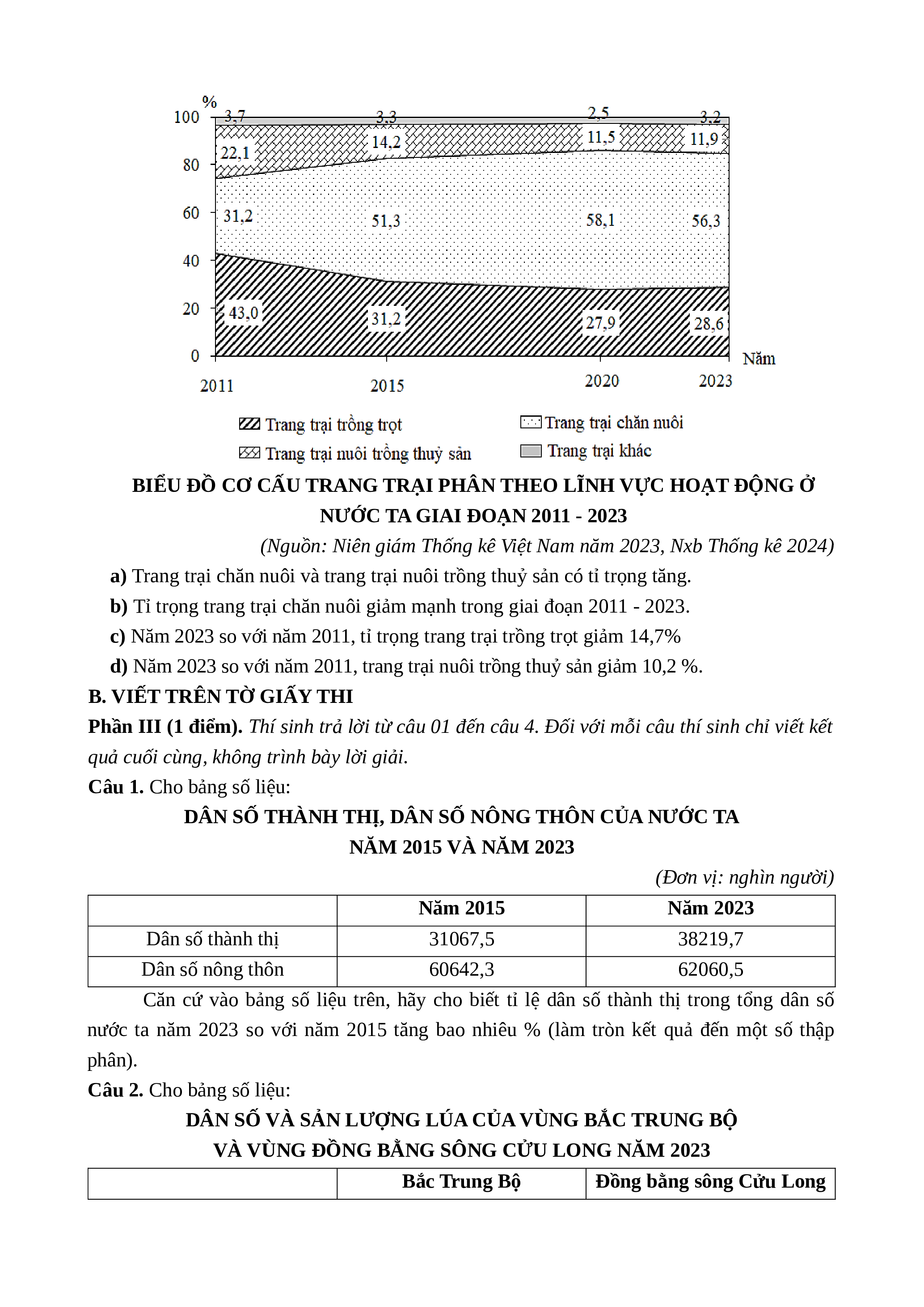 d) Đồng bằng sông Cửu Long là vùng sản xuất lúa hàng hóa, chăn nuôi vịt và nuôi trồng