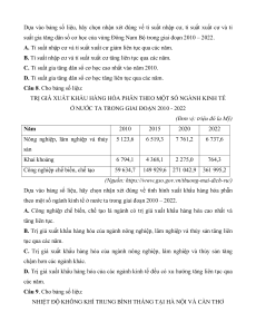 Dựa vào bảng số liệu, hãy chọn nhận xét đúng về tình hình xuất khẩu hàng hóa phẫn