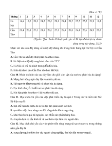 NHIỆT ĐỘ KHÔNG KHÍ TRUNG BÌNH THÁNG TẠI HÀ NỘI VÀ CẦN THƠ (Đơn vị: oC) Tháng 1 2 3 4 5 6 7 8 9 10 11 12 Hà