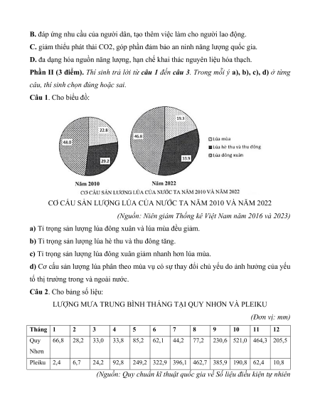 Câu 2. Loại gió nào sau đây là nhân tố chính tạo nên mùa khô ở Nam Bộ của nước ta? A. Gió phơn Tây Nam.