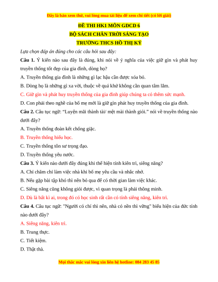 ĐỀ THI HK1 MÔN GDCD 6