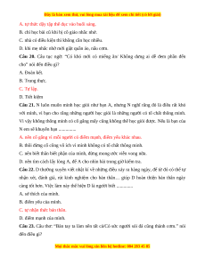Câu 17. Câu tục ngữ: “Thẳng như ruột ngựa” ý nói người nào đó luôn sống .............. A. giản dị, cần cù. B. tôn trọng sự thật.