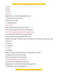 Câu 20. Câu tục ngữ: “Tự lực cánh sinh” nói đến đức tính gì? A. Đoàn kết.