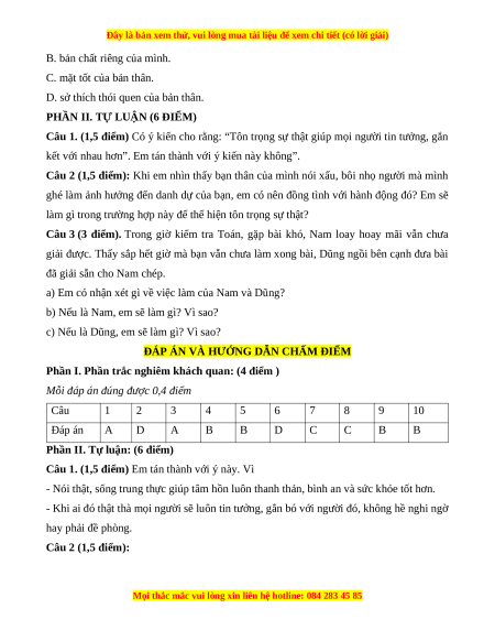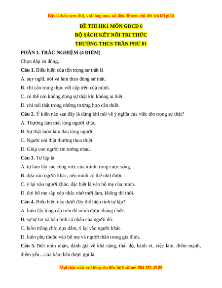ĐỀ THI HK1 MÔN GDCD 6