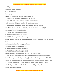 Câu 8. Hành vi nào sau đây không thể hiện đức tính của một người luôn tôn trọng sự