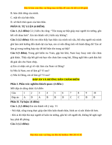 Câu 1. (1,5 điểm) Có ý kiến cho rằng: “Tôn trọng sự thật giúp mọi người tin tưởng, gắn