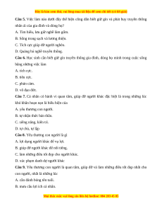 Câu 24. Việc làm nào dưới đây thể hiện học sinh thực hiện tốt lòng yêu thương con