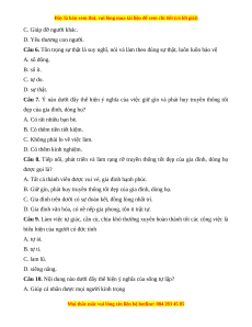 Câu 1. Biểu hiện của tôn trọng sự thật là suy nghĩ, nói và làm theo đúng A. niềm tin. B. sở thích. C. sự thật. D. mệnh lệnh.