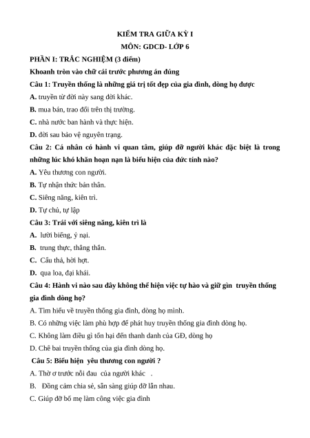 KIỂM TRA GIỮA KỲ I MÔN: GDCD- LỚP 6