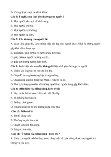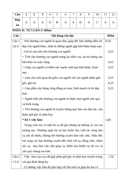 Câu 1 - Yêu thương con người là quan tâm, giúp đỡ, làm những điều tốt 0,5đ 3,0 đ