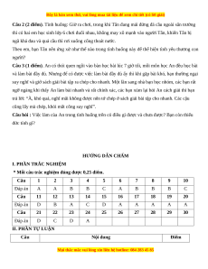 * Mỗi câu trắc nghiệm đúng được 0,25 điểm. Câu 1 2 3 4 5 6 7 8 9 10 Đáp án A A B B C A B B B C Câu 11 12 13 14 15 16 17 18 19 20 Đáp án D B A C D A A A A A Câu 21 22 23 24 25 26 27 28 29 30 Đáp án D C D A II. PHẦN TỰ LUẬN Câu Nội dung Điểm