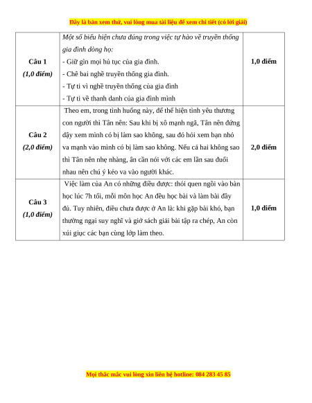 Câu 1 (1 điểm): Em hãy nêu một vài biểu hiện chưa đúng khi giữ gìn và phát huy truyền thống gia đình,