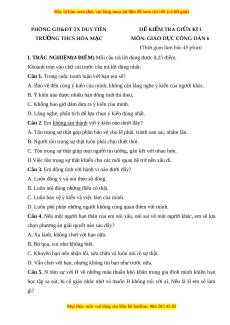 PHÒNG GD&ĐT TX DUY TIÊN Đ KI Ề M TRA GI Ể A KÌ I Ữ TR NG THCS HÒA M ƯỜ ẠC