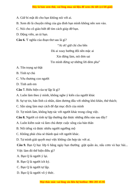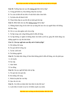 Câu 11. Biểu hiện nào sau đây không mang tính tự lập?