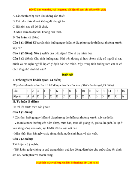 Câu 1 (1 điểm) Kể ra các tình huống nguy hiểm ở địa phương do thiên tai thường xuyên