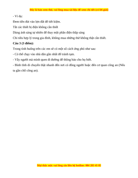 Câu 3 (3 điểm): Cho tình huống sau: Khi trên đường đi học về em thấy có người đi sau