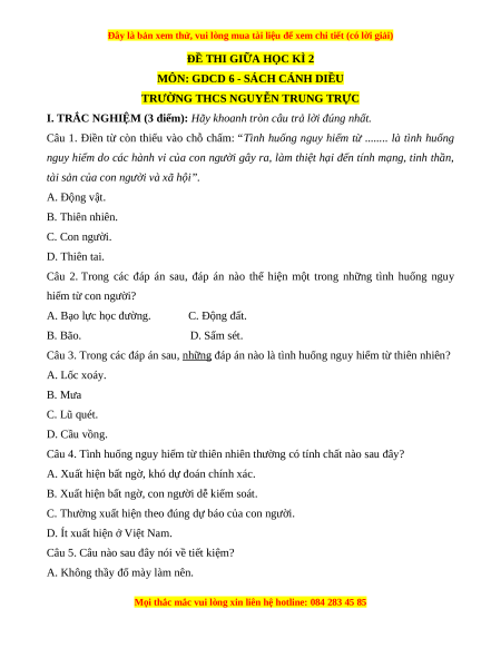 Đây là bản xem thử, vui lòng mua tài liệu để xem chi tiết (có lời giải)