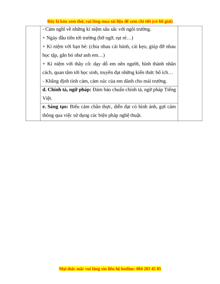 Em hãy viết bài văn cảm nghĩ về mái trường của em. HƯỚNG DẪN CHẤM