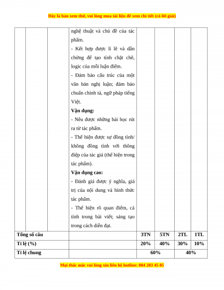 tính trong bài viết; sáng tạo trong cách diễn đạt. Tổng số câu 3TN 5TN 2TL 1TL Tỉ lệ (%) 20% 40% 30% 10% Tỉ lệ chung 60% 40%