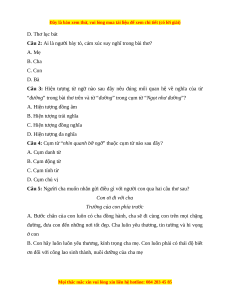 Câu 2 A. Hiện tượng đồng âm 0,5 điểm Câu 3 C. Cha 0,5 điểm