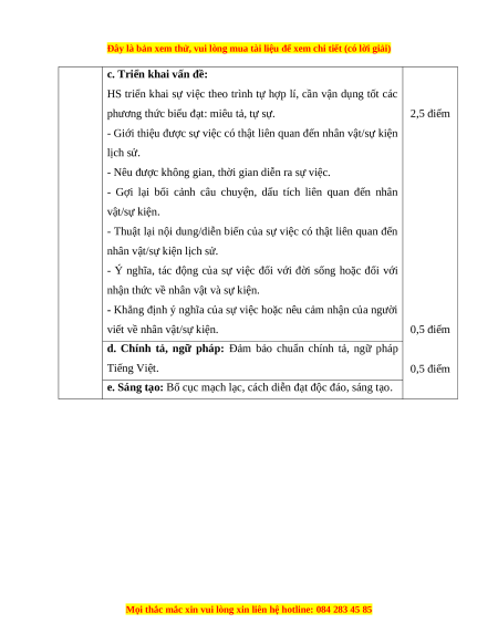 liên quan đến một nhân vật hoặc sự kiện lịch sử mà em yêu thích. HƯỚNG DẪN CHẤM