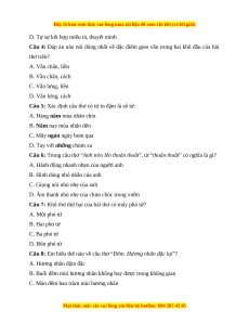 Câu 7: Khổ thơ thứ hai của bài thơ có mấy phó từ? A. Một phó từ B. Hai phó từ C. Ba phó từ D. Bốn phó từ