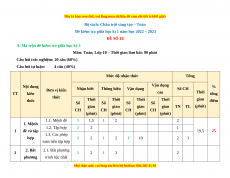 Mức độ nhận thức Tổng Nội dung Vận dụng % Đơn vị kiến Nhận biết Thông hiểu Vận dụng Số CH TT kiến cao Thời tổng thức thức Thời Thời Thời Thời gian điểm Số Số Số Số gian gian gian gian TN TL (phút) CH CH CH CH (phút) (phút) (phút) (phút) 1.1. Mệnh đề 1 1,5 1 2 2 1. Mệnh 1.2. Tập hợp 1 2 1 1 đề và tập 19,5 25 1.3. Các phép hợp 1 2 1 2 1 10 2 1 toán trên tập hợp 2. Bất 2.1. Bất phương 2 1 2 1 3 2 phương trình bậc nhất