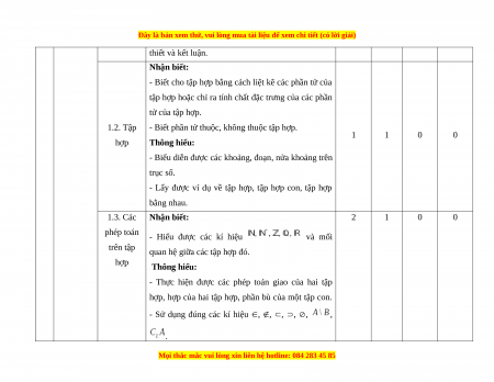- Lấy được ví dụ về tập hợp, tập hợp con, tập hợp bằng nhau. 1.3. Các Nhận biết: 2 1 0 0 phép toán