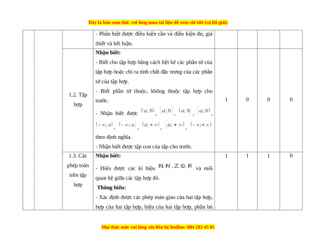 - Biết phần tử thuộc, không thuộc tập hợp cho 1.2. Tập trước. 1 0 0 0 hợp - Nhận biết được , , , , , , , , theo định nghĩa.