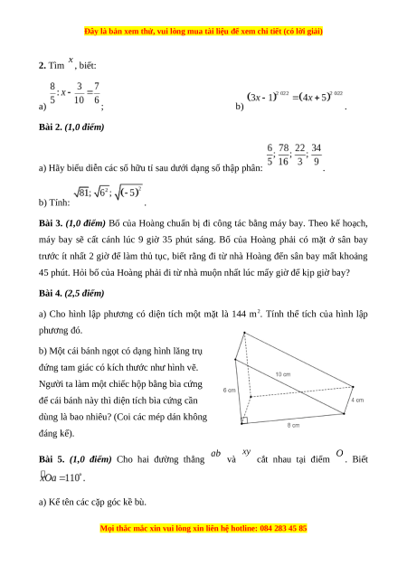Bài 3. (1,0 điểm) Bố của Hoàng chuẩn bị đi công tác bằng máy bay. Theo kế hoạch,