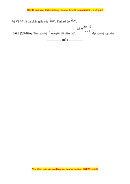 Bài 6 (0,5 điểm) Tính giá trị nguyên để biểu thức đạt giá trị nguyên.