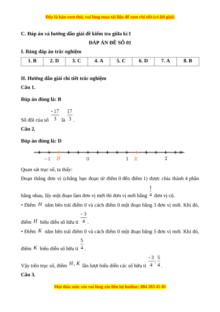 Câu 1. Số đối của số là A. ; B. ; C. ; D. .